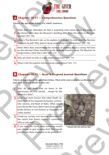 Answers for the giver chapter questions Wed 28 Nov 2018 191700 GMT answers for the giver chapter pdf Download The Giver Study Guide Subscribe now to Short Answer Study Guide Questions with Answers The Giver page 2 Chapters 11 13 1 The giver chapter questions and answers pdf. Download File PDF The Giver Questions And Answers Chapters 11 15 facade. As Jonas leaves for the day The Receiver tells Jonas not to call him The Receiver any longer since Jonas is actually the new Receiver.
